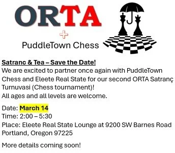 Join us for our second ORTA Chess tournament on March 14!!